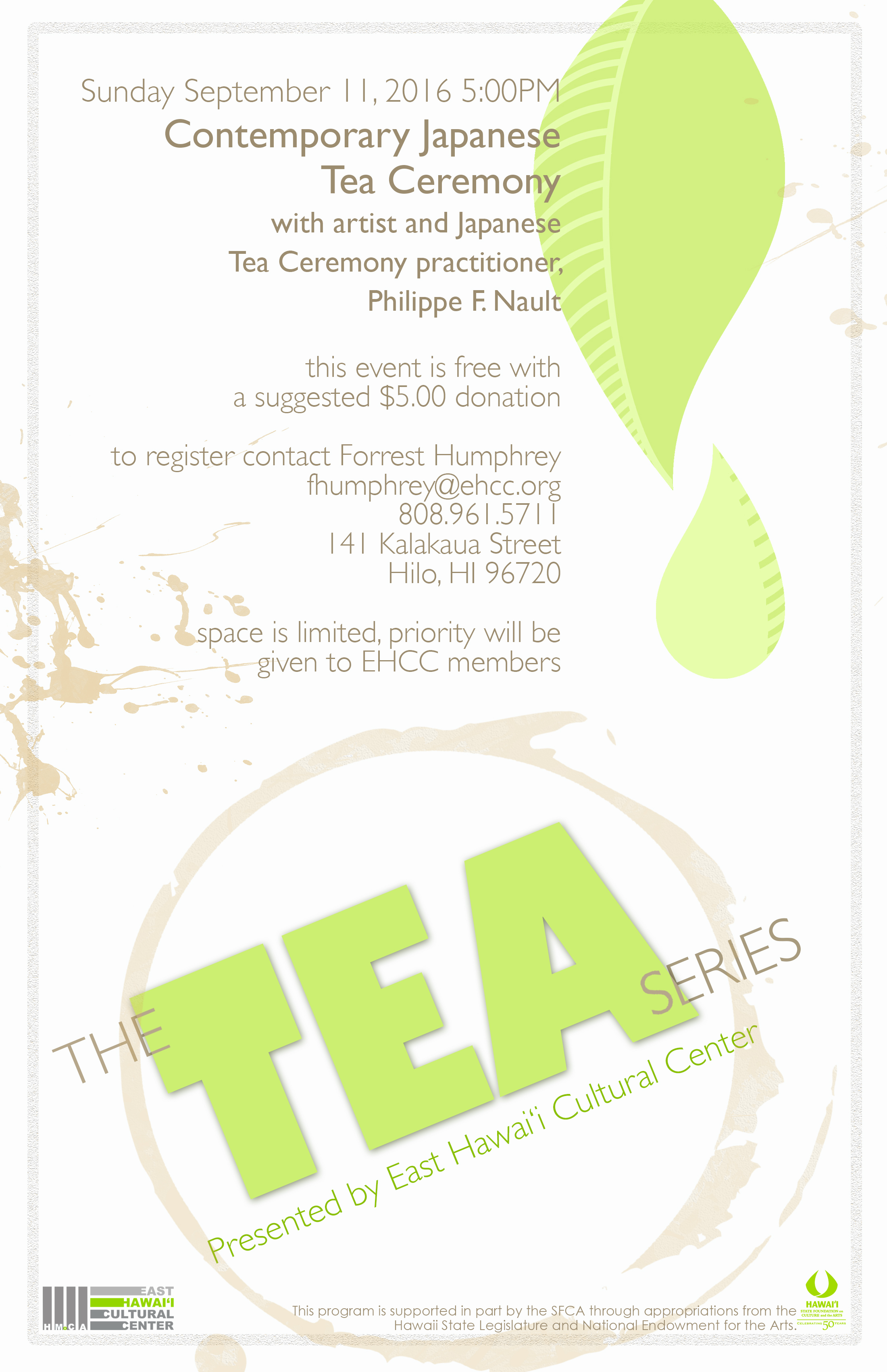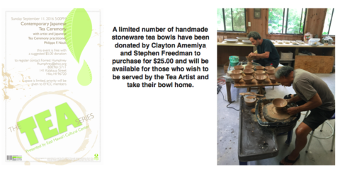 We are excited to partner with Japanese Tea Ceremony master, Phillipe Nault, and Tea Hawaii, both of whom will bring their invaluable expertise in the world of tea to EHCC as we introduce our latest program titled Tea Ceremony.
