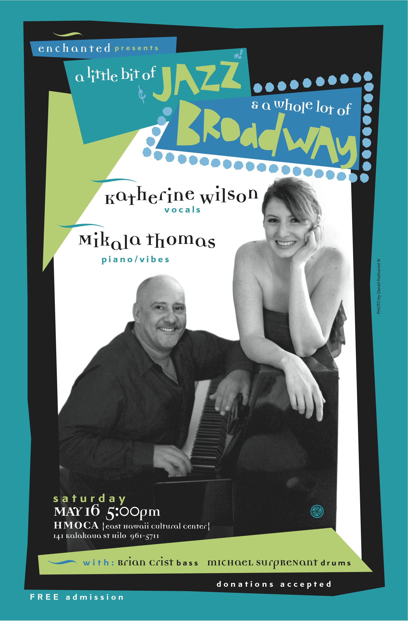 Katherine Wilson, vocals, and Mikala Thomas, piano/vibes, Brian Crist, Bass and Michael Surprenant, Drums present “A Little bit of Jazz and a whole lot of Broadway” Saturday, May 16 at HMOCA theatre at 5:00 p.m. Admission is Free.