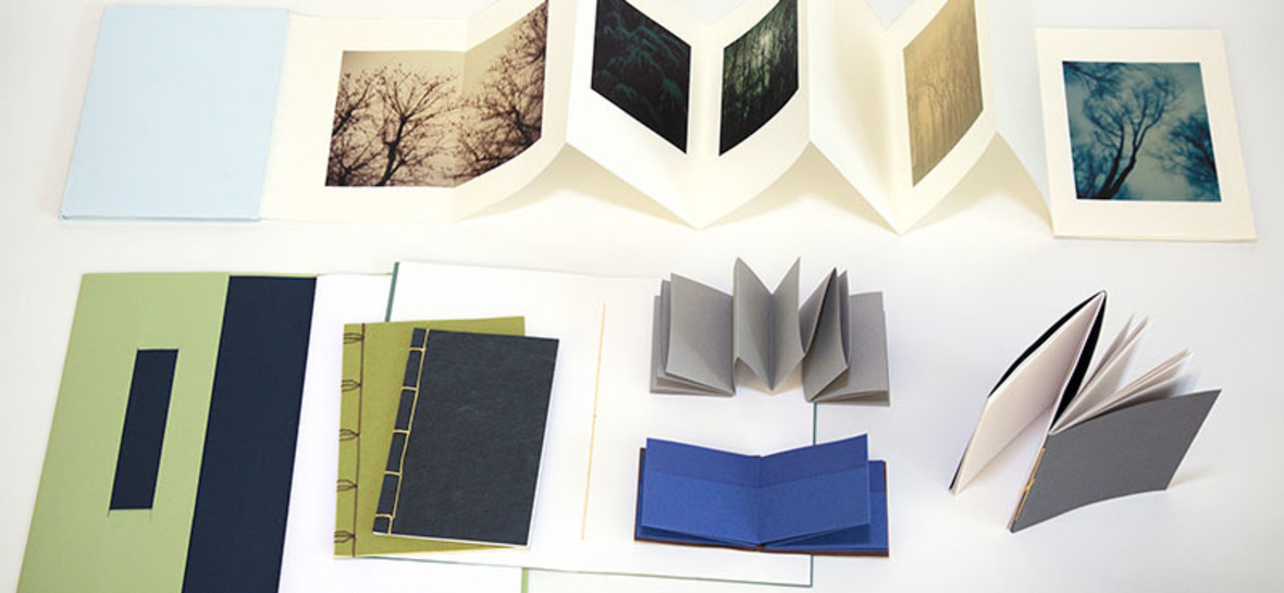 In this two (2) day workshop, students will learn how to make various types of books: basic instant, accordion fold, pocket accordion, self-hinged accordion with a cover, single signature chapbook using a three-hole pamphlet stitch and a five- hole pamphlet stitch. Asian bookbinding methods, such as stab binding and tortoise-shell binding will also be taught. No previous bookmaking experience is required. Photographers, printmakers, illustrators, graphic designers, writers and anyone interested in creating a softcover book are welcome.
