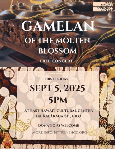 Molten Blossom, EHCC’s community Javanese gamelan group, will perform at the Bob Brown Gamelan Studio (behind EHCC’s main building). The concert will feature several Semarang-style pieces (light, catchy music) and a bake sale. The performance is free but donations are welcome. Proceeds will support the group’s study tour to Ekalaya, an Indonesian arts center in Central Java, in October.
