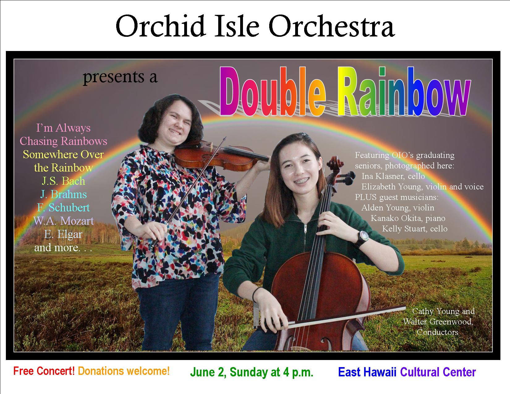 Orchid Isle Orchestra presents a “Double Rainbow” concert on Sunday, June 2, 4 p.m. at the East Hawaii Cultural Center.