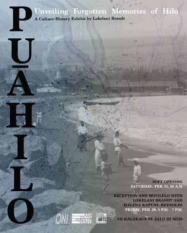 - Reception and Moʻolelo with guest cultural curator Lokelani Brandt and cultural advisor Halena Kapuni-Reynolds, Friday February 28th, 5-7pm.