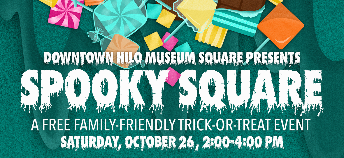 The Downtown Hilo Museum Square presents Spooky Square 2024! The Museum Square has partnered with businesses around the block for a free family-friendly trick-or-treat event. Put on your costumes, and spend the afternoon exploring Downtown Hilo and collecting tricks or treats. Happy Halloween!